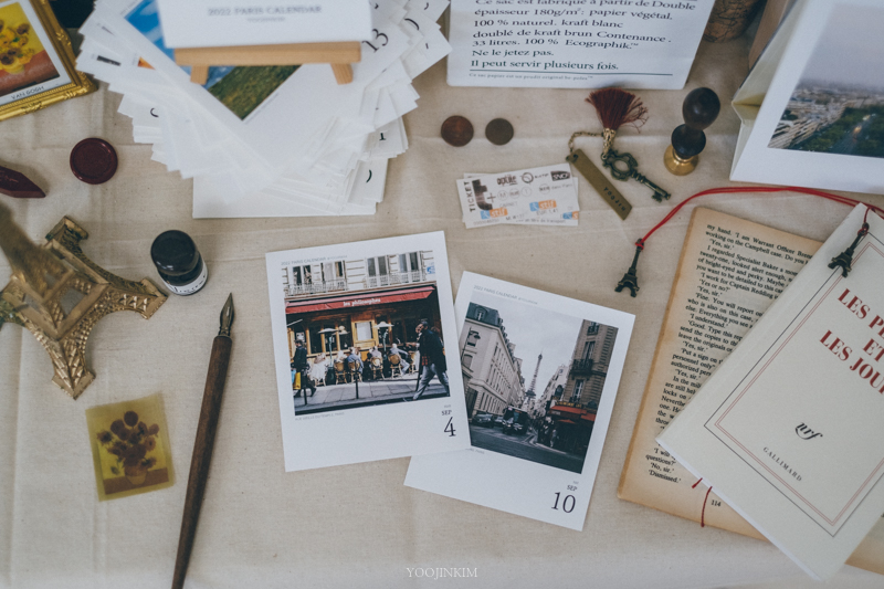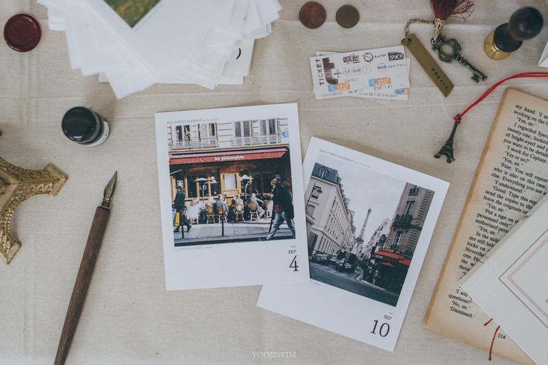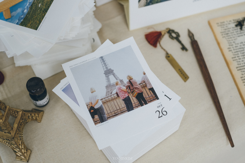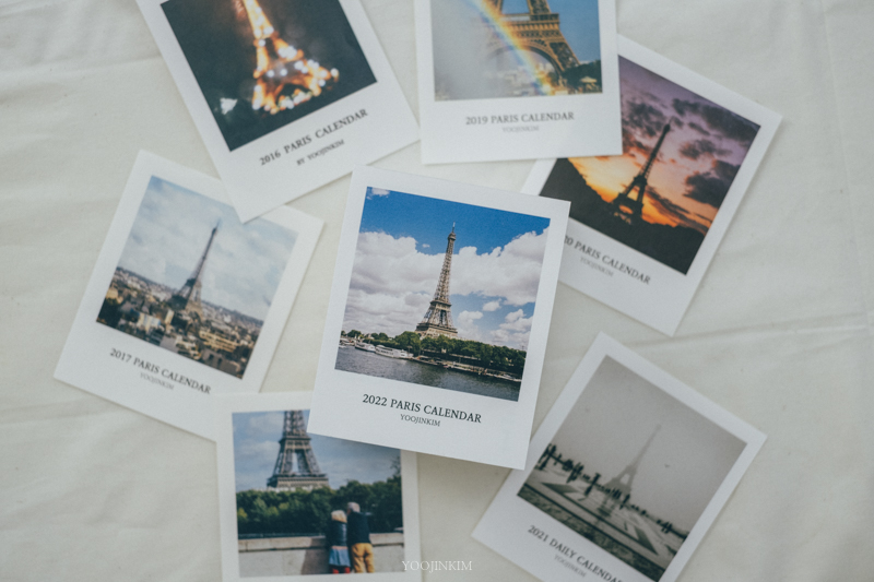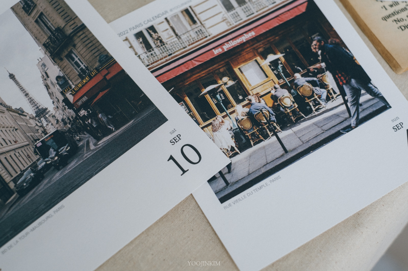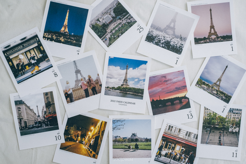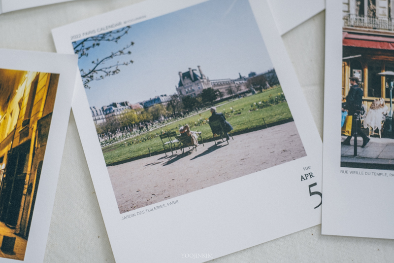 아무튼, 파리를 여행하듯 살며 담은 필름 사진이 몇 천 장이 되었어요(이게 도대체 얼마야). 그중에 또 조금 더 아끼는 사진을 고르고 골라 2022년 일력을 만들었습니다.